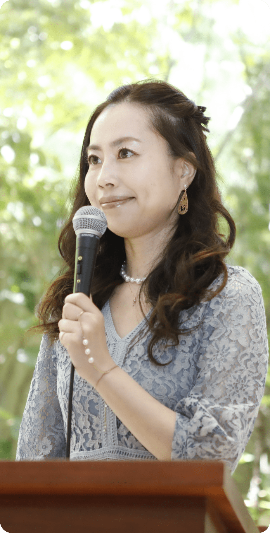 多様な「価値観」が交錯する場に、共鳴し響き合う「物語」を紡ぎます。一つひとつの「言葉」に心を込めて、会場全体に「エッセンス」を散りばめ、参加者一人ひとりの心に「いいね!」を届けます。新郎新婦だけではなく、ゲストお一人お一人が主役になれるような楽しくて幸せで温かい時間をお手伝いさせてください。